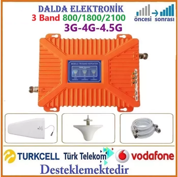 1 ADET (LİTE 4.5G 800 / DCS 4.5G 1800 / W-CDMA 3G 2100MHZ) Kazanç 75DB/Çıkış Gücü 17DB Cihaz