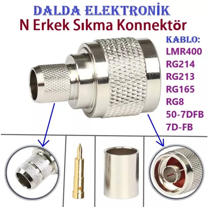 LMR400 N Erkek Sıkmalı Konnektör UYUMLU KABLOLAR: LMR400, RG213, RG8, RG165, RG214, 7DFB, 7D-FB, 8DFB, RG11