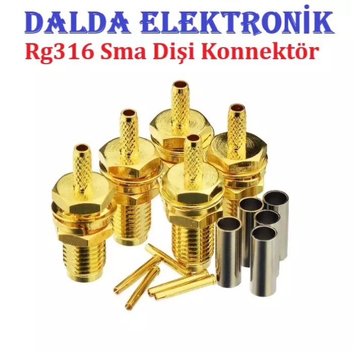 ☑Tip ve detaylar: Rg316 Sma Dişi Sıkmalı Konnektör; Renk: altın ve gümüş; Malzeme: bakır ve nikel kaplama; Empedans: 50 ohm, düşük kayıp