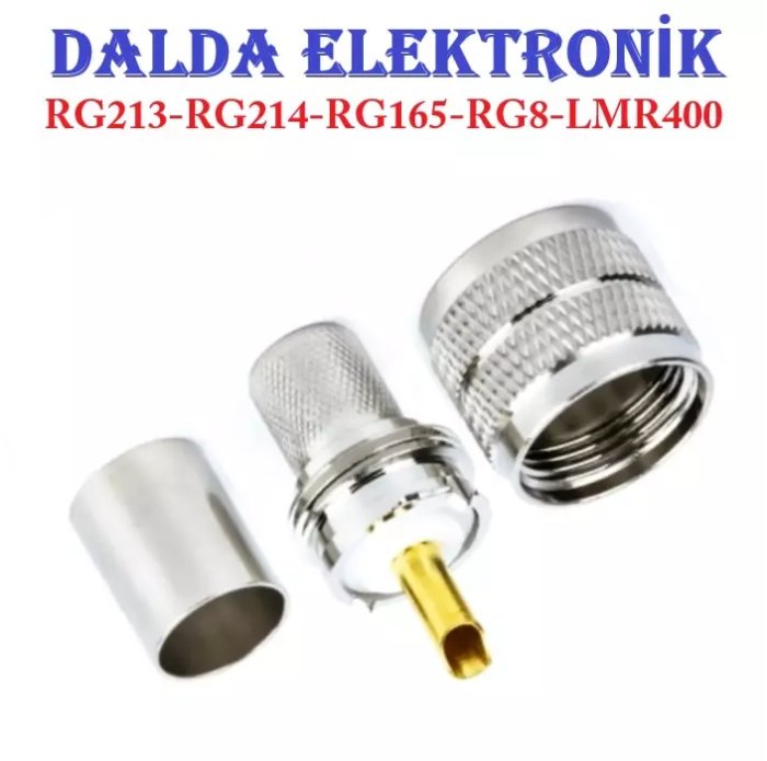 Rg213 Uhf Pl259 Erkek Sikmali Konnektör, RG213-RG214-RG165-RG8-LMR400-50-7DFB, Telsiz Haberleşme, Güvenlik Sistemleri, Medikal Cihazlar, Telekominikasyon Sistemleri, Radyo ve Televizyon Yayıncılığı, Broadcast, Uydu Haberleşme Cihazları, Baz İstasyonları, GSM, RFID, CCTV, Wifi Dönüştürücü ekipmanı.