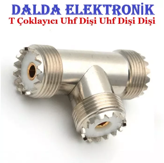 Uhf T Çoklayıcı 3 Yollu Dişi PL-259 Koaksiyel Adaptör SO239, Aslen uçak sanayi ve titreşimin çok önemli ve hassas olduğu füze uygulamaları için geliştirilmiştir. konnektörleri boyut olarak konnektörlerin minyatürü boyutundadır fakat birleştirme somunu sayesinde 11 GHz’e kadar performansa sahiptir.Dayanıklılığı ve güvenilirliği tercih sebebi olmuş ve ağırlıklı olarak iletişim endüstrisinde kullanılmaktadır. Altın kaplama kontak pin ve nikel kaplama gövde sayesinde sinyal kaybını en aza indirir.