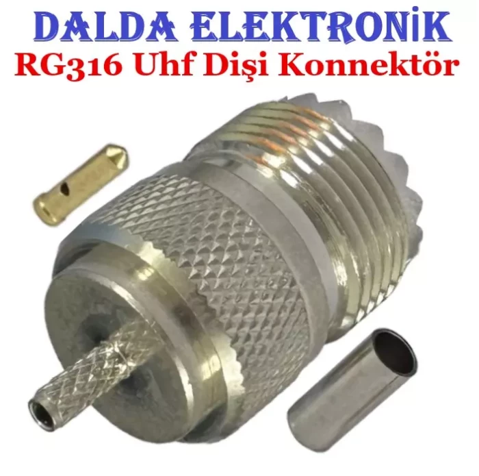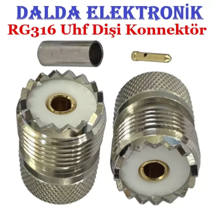 RG316 Uhf Dişi Konnektör, RG316,LMR100,RG188,RG179,RG174, Aslen uçak sanayi ve titreşimin çok önemli ve hassas olduğu füze uygulamaları için geliştirilmiştir. konnektörleri boyut olarak konnektörlerin minyatürü boyutundadır fakat birleştirme somunu sayesinde Kaliteli bir performansa sahiptir.Dayanıklılığı ve güvenilirliği tercih sebebi olmuş ve ağırlıklı olarak iletişim endüstrisinde kullanılmaktadır. Altın kaplama kontak pin ve nikel kaplama gövde sayesinde sinyal kaybını en aza indirir.