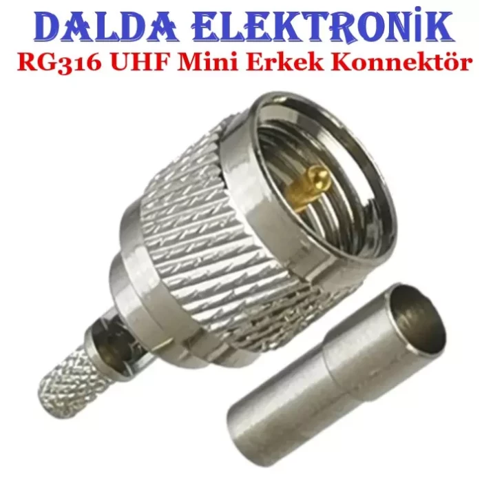 RG316 Uhf Mini Erkek Konnektör, RG316,LMR100,RG188,RG179,RG174, Aslen uçak sanayi ve titreşimin çok önemli ve hassas olduğu füze uygulamaları için geliştirilmiştir. konnektörleri boyut olarak konnektörlerin minyatürü boyutundadır fakat birleştirme somunu sayesinde Kaliteli bir performansa sahiptir.Dayanıklılığı ve güvenilirliği tercih sebebi olmuş ve ağırlıklı olarak iletişim endüstrisinde kullanılmaktadır. Altın kaplama kontak pin ve nikel kaplama gövde sayesinde sinyal kaybını en aza indirir.