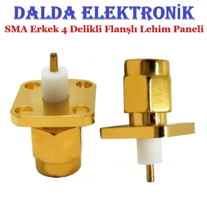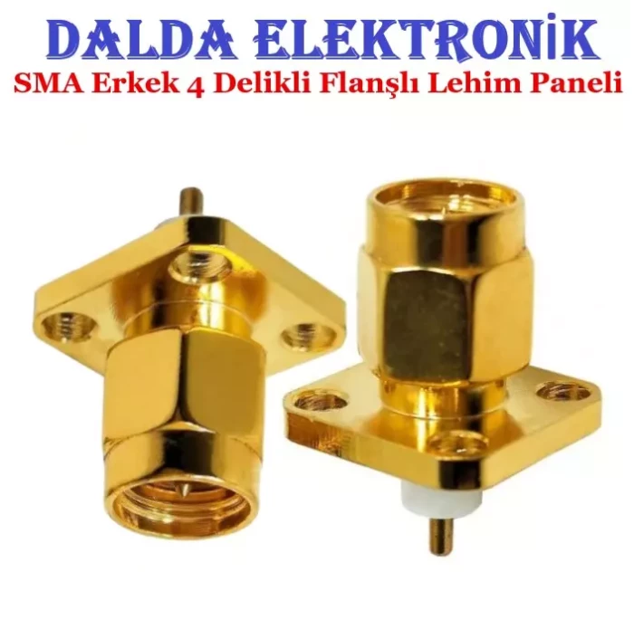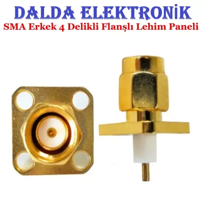 Sma Erkek 4 Delikli Flanşlı Lehim Paneli, Aslen uçak sanayi ve titreşimin çok önemli ve hassas olduğu füze uygulamaları için geliştirilmiştir. SMA konnektörleri boyut olarak SMA konnektörlerin minyatürü boyutundadır fakat birleştirme somunu sayesinde 4 GHz’e kadar performansa sahiptir.Dayanıklılığı ve güvenilirliği tercih sebebi olmuş ve ağırlıklı olarak iletişim endüstrisinde kullanılmaktadır. Altın kaplama kontak pin ve nikel kaplama gövde sayesinde sinyal kaybını en aza indirir.