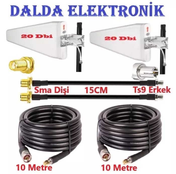 SuperBox Modem Anten 10+10 Toplam 20M Kablo, 20 Dbi LPDA Periyodik Anten 2G, 3G, 4G, 4.5G, Wifi, Wimax, GPRS, GSM, DCS, LTE, WCDMA, UMTS, Wifi 2.4 GHz, Wifi 2.5 GHz Kısaca 698 ∼ 3400 MHz Aralığında Yayın Yapan Her Çeşit Cihazda Kullanılabilir.